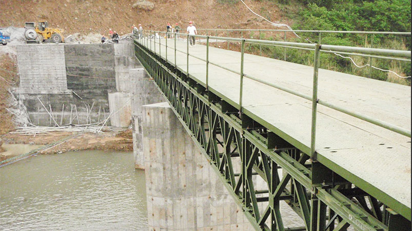 公司產(chǎn)品有ZQ100型(即321型貝雷片)、ZQ200型貝雷橋、ZQ200C型和ZQ200W型裝配式公路鋼橋以及特種應(yīng)急橋梁